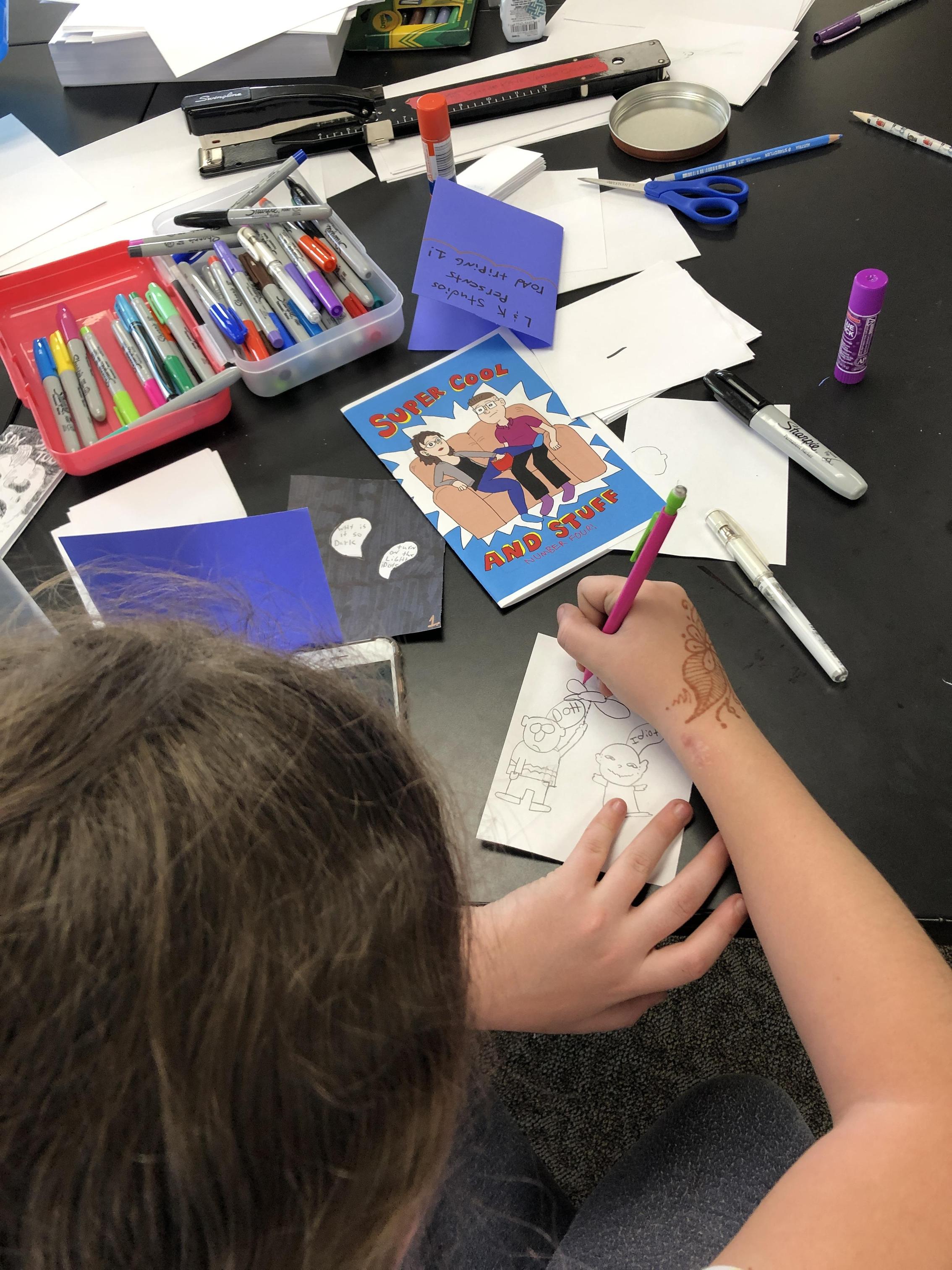 What is a 'Zine'? It's short for "magazine" or "fanzine". Enter the world of small press publishing by creating your own zines and mini-comics! Zines can be about almost anything and are a DIY art form, allowing for personal expression and community building. Do you love insects or space travel, baking cakes or map making, the latest movies or mountain biking? No matter what you are most curious about or love to do, you can find ways to share what you enjoy in a Zine. We'll explore different components of self-publishing --- printmaking, page layout, comic creation, graphic design, book-binding, collage making and more. At the end of the term, we may trade, share, and even sell copies of our Zines to get them out in our school community. Instructor: Bonnie Cooper