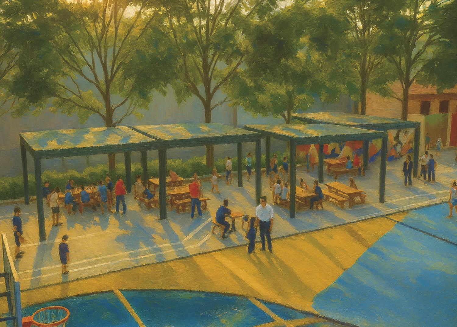Resurfacing the asphalt paving with vibrant stripes and transforming the basketball court with bright colors and playful designs will showcase our school’s artistic roots — and make playtime even more fun. Work on this first phase began in September 2025.